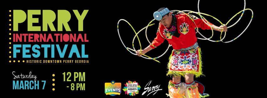 Join us Saturday, March 7 | 12 PM – 8 PM in Historic Downtown Perry for international music, dance, and family-friendly fun.