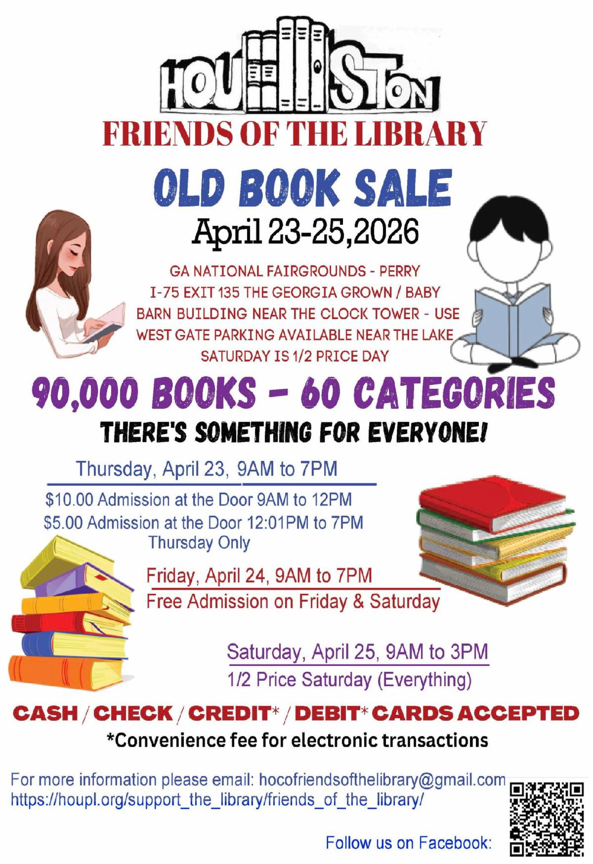 The 2026 Houston County Friends of the Library Old Book Sale returns April 23–25 at the Georgia National Fairgrounds in Perry!