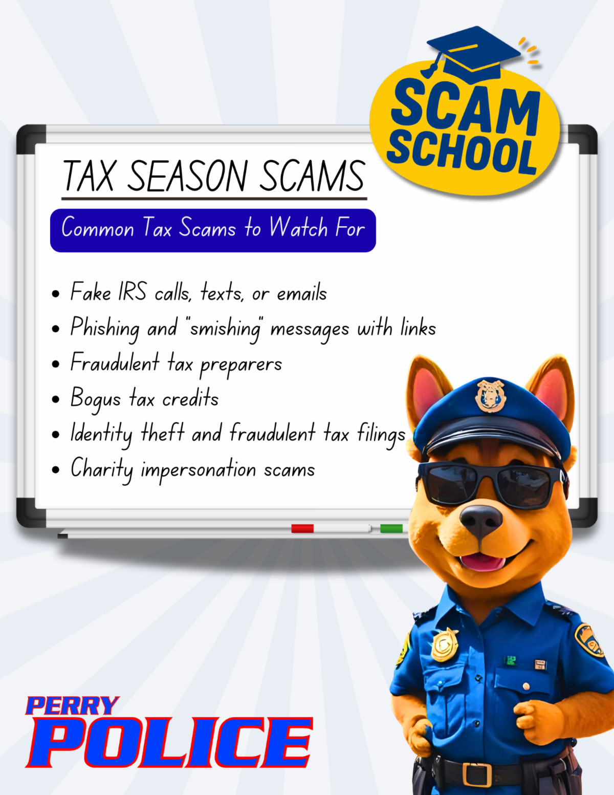 Scammers often pose as the IRS, tax preparers, or charities to steal money and personal information during tax season.