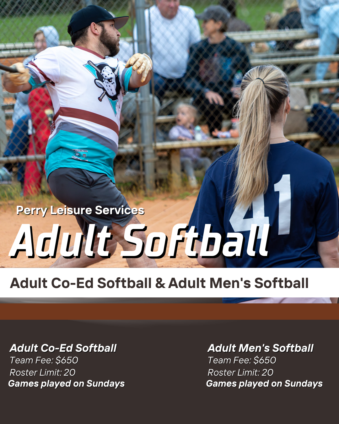 Registration is open until March 8 for Perry Leisure Services Adult Softball!