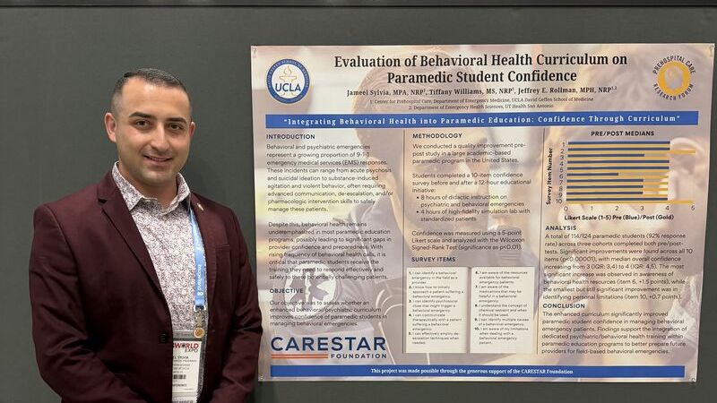 Exciting news! Jameel Sylvia, MPA, NRP, Director of Paramedic Programs at UCLA, won Best Poster and Best Oral Presentation in Education at EMS World Expo 2025 for research advancing mental health response in EMS.