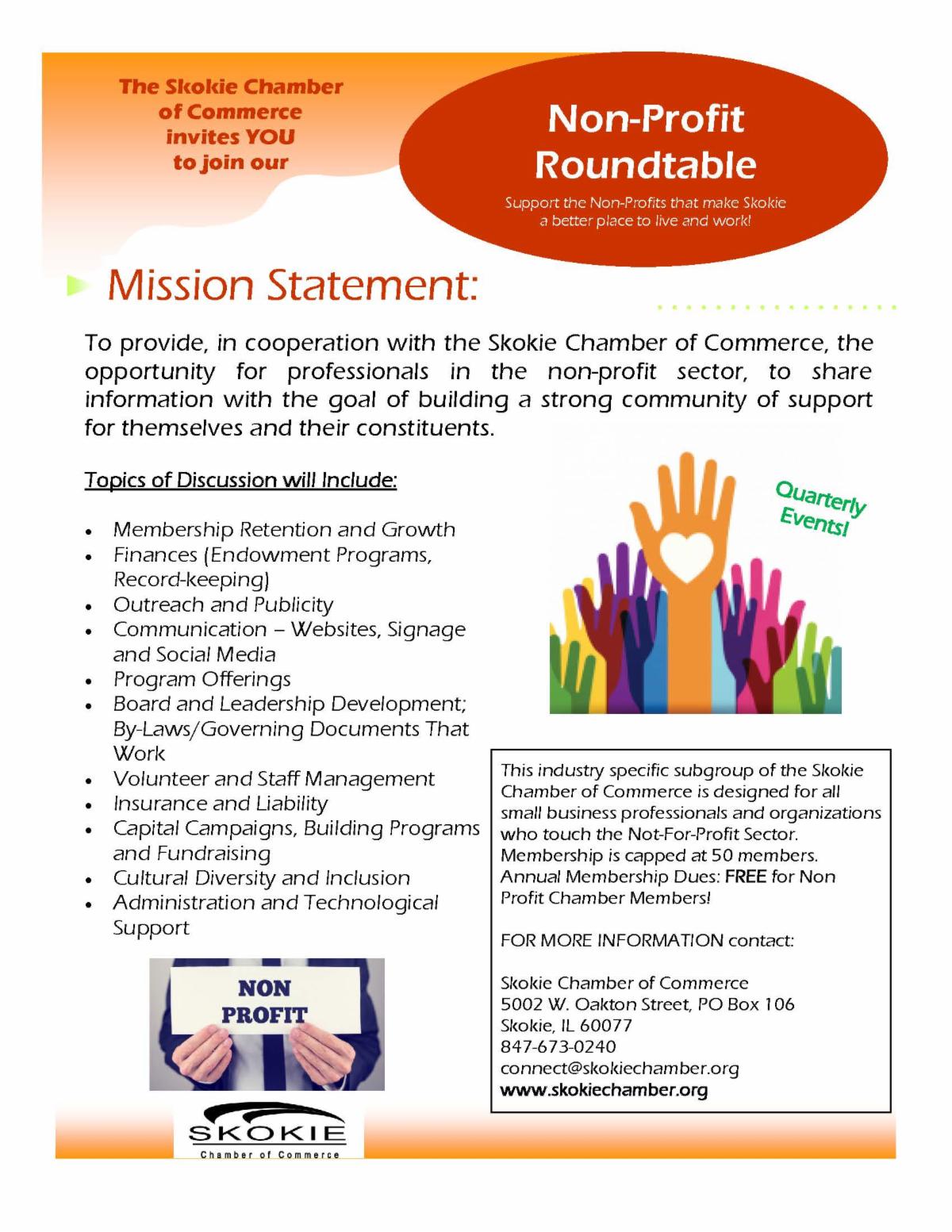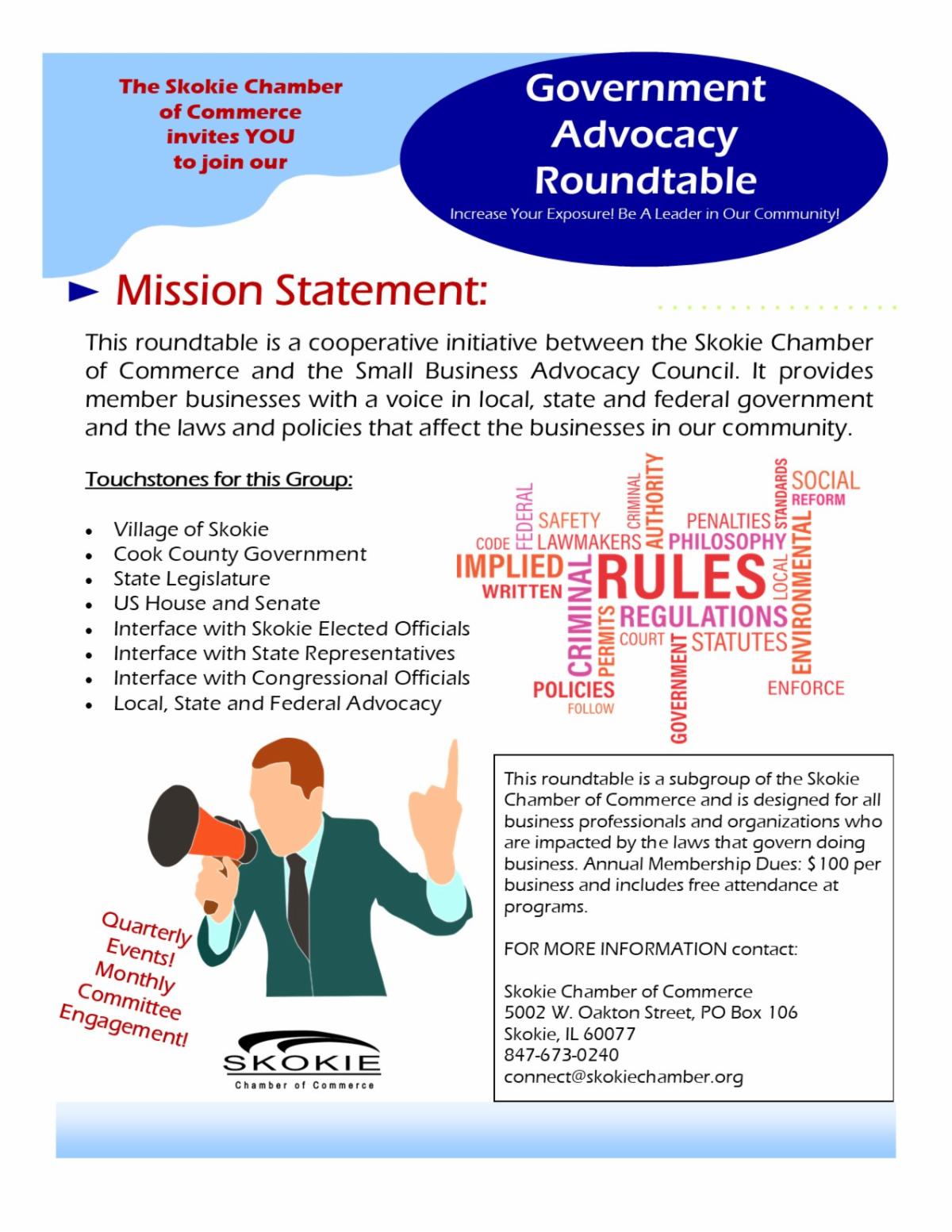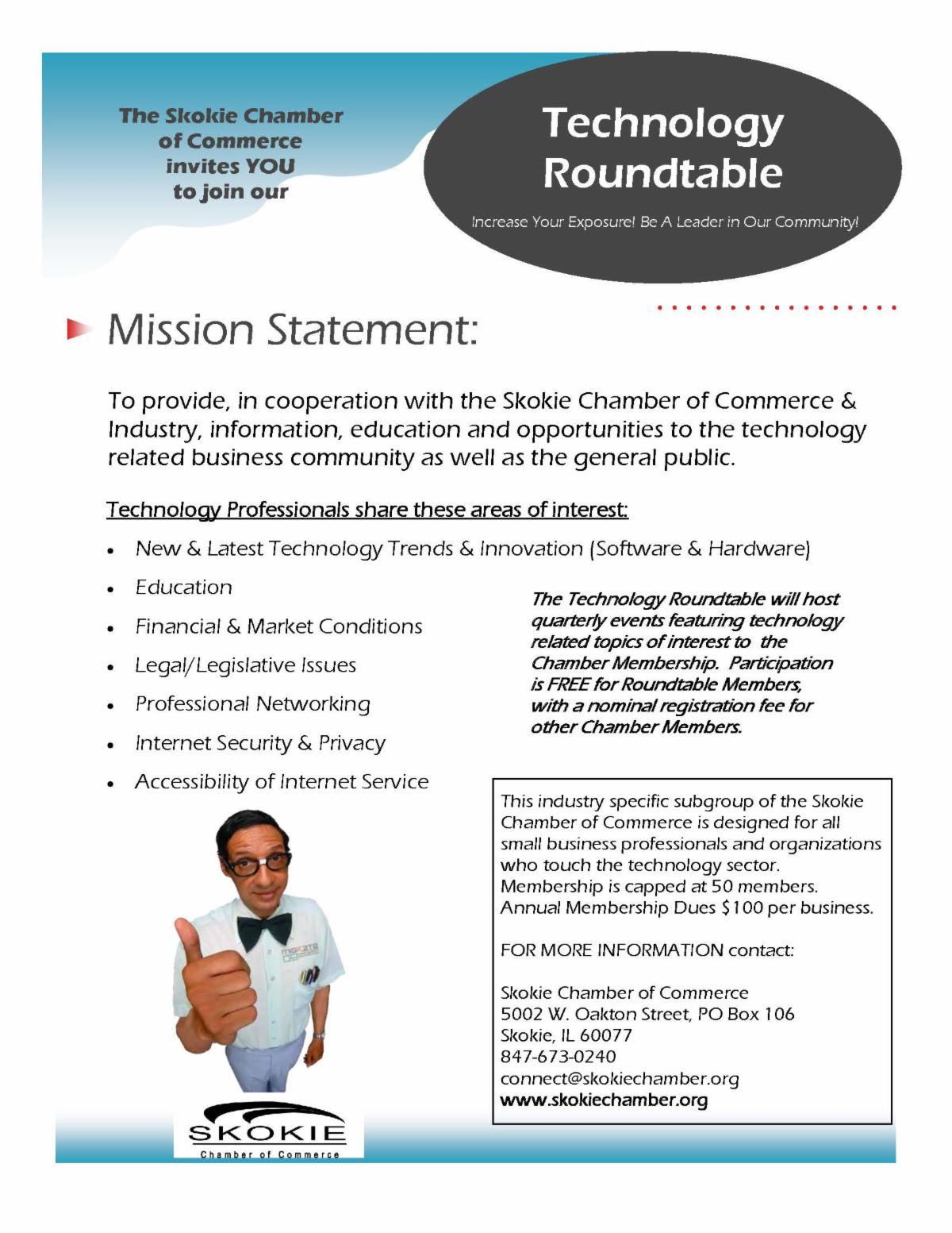 The Skokie Chamber of Commerce & Industry currently has 5 Roundtables designed to connect and engage members in related business categories. Details below.