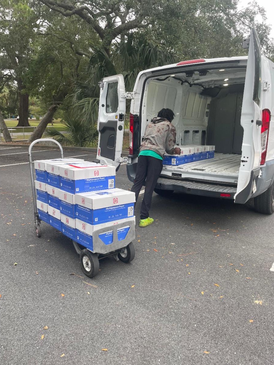 Glynn Co. School vans loading to deliver!