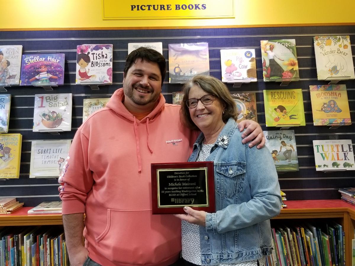Michele Mairani taught kindergarten at Clifford School in Redwood City for 22 years. A die-hard library lover, she used the library extensively with her students to promote literacy. In honor of her retirement, her daughter and two sons presented the library with a tribute gift, which will be used to support the book collection in the children's room of the Downtown Library. A plaque in the children's room recognizes their donation in honor of Ms. Mairani's many years of teaching and her retirement. The donor recognition ceremony was held in the Downtown Library on Friday, February 17.