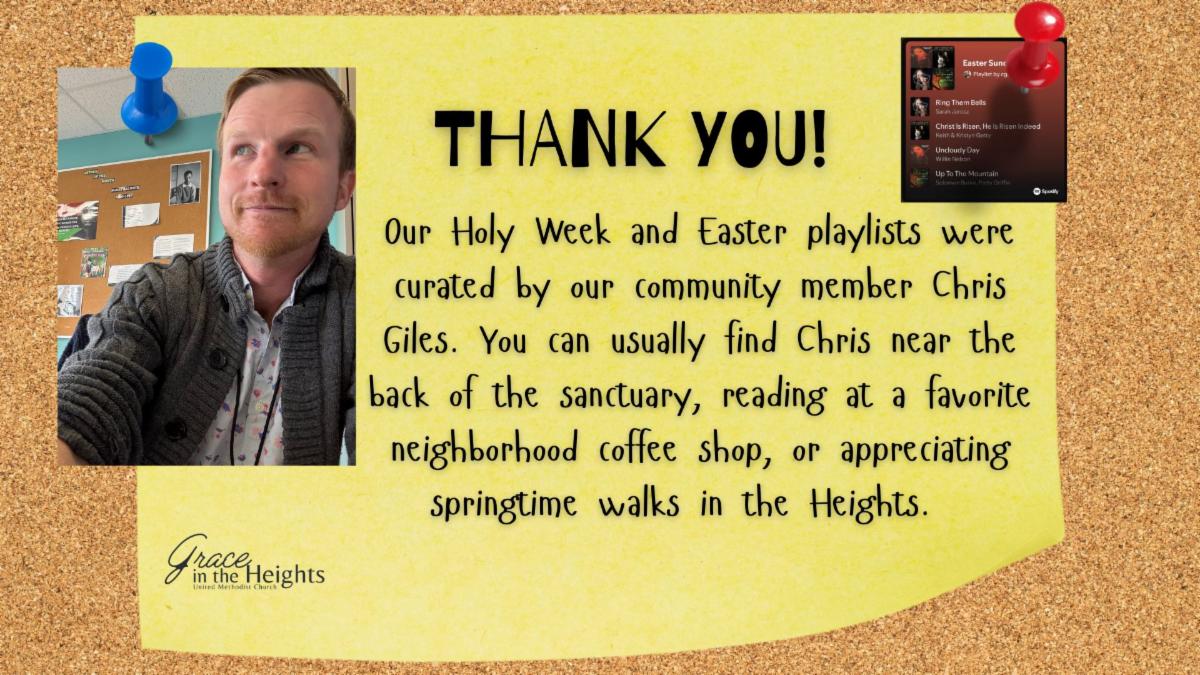 To help you settle into living the rhythms, our very own homegrown DJ Christopher Giles compiled Spotify playlists for us to listen to today, tomorrow, and Sunday. If you’re traveling, this is a perfect way to join us in spirit! May these playlists bless you and be signs of God’s persistent goodness, absurd mercy, and extraordinary love.
