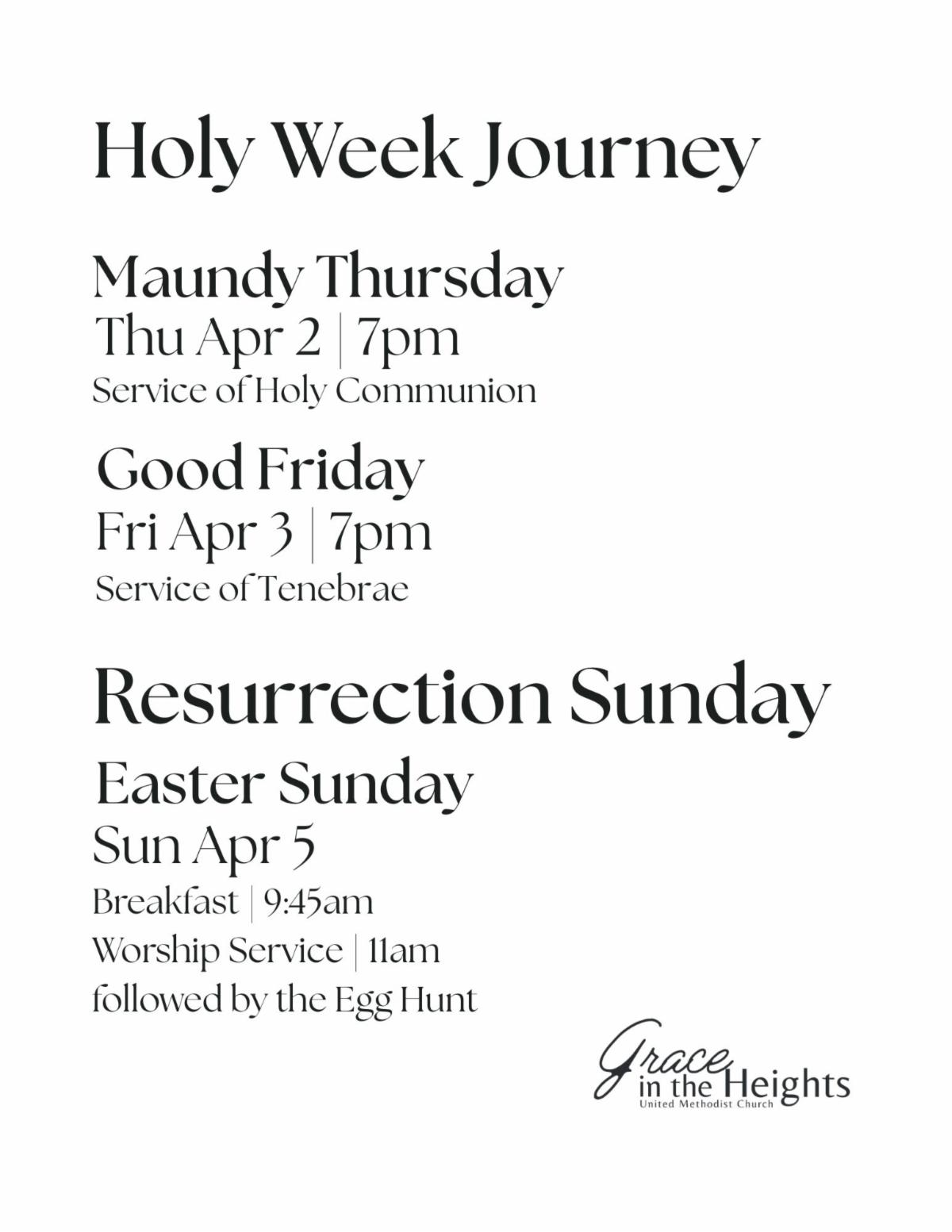 As we sink into the story of Holy Week, I pray you experience God in personal ways and hope you’ll be with us for each service. Like fast-forwarding to the end of your favorite movie or only reading the final chapter of a beloved well-worn book, only joining us Easter Sunday means there’s so much richness and depth of the story missed.
