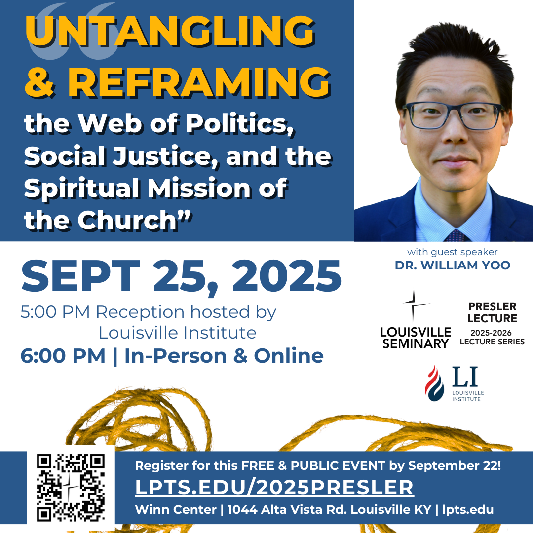 Louisville Presbyterian Theological Seminary invites you to the 2025 Presler Lecture featuring Dr. William Yoo, Associate Professor of American Religious and Cultural History at Columbia Theological Seminary.