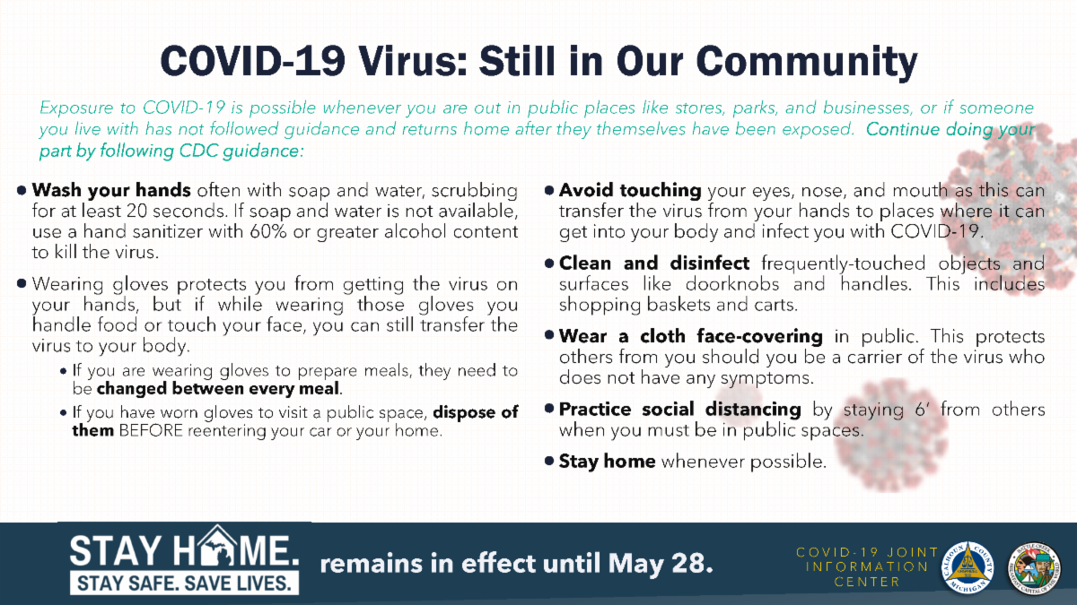 As the State of Michigan – and Calhoun County – begin the gradual process of reopening some businesses, and restarting some activities, local leaders stress the importance of staying vigilant and following the guidance that will continue to prevent the spread of the coronavirus, or COVID-19.
