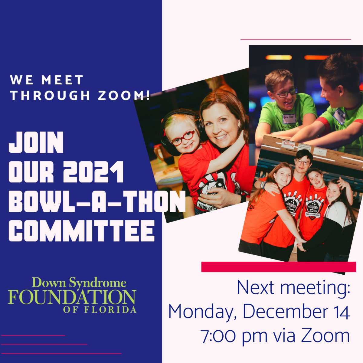- Tuesday, December 8 - Bowl-A-Thon Training: Learn how to share your story, set up your team and more! (7:00pm)