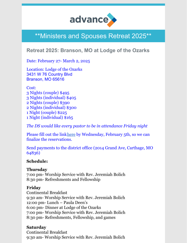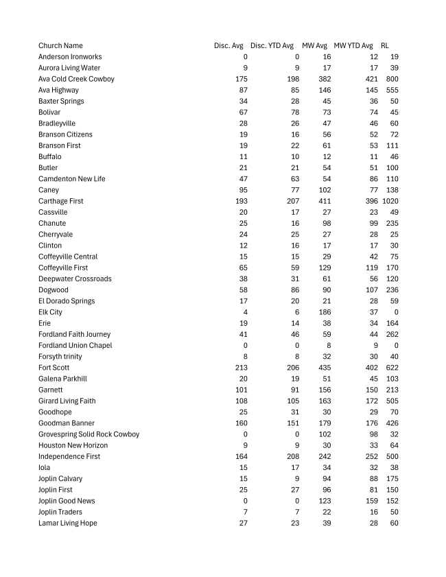 I believe the cause of this increase is two-fold. We are seeing the result of the Church Planting emphasis, and we are renewing the call to Evangelism. With both continuing to be enabled, I believe we can see more people coming to Christ than ever before, in North America, including the Joplin District. Let’s keep our eyes focused on our goal of 1,400 people coming to know Christ. Let’s look for opportunities to plant churches and together let’s see more people accepting a call to ministry than ever before.