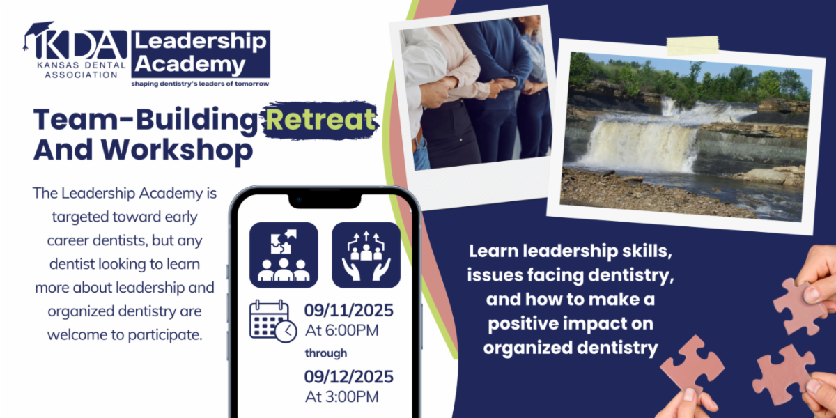 Other KDA Officers are President-elect, Dr. Kate Stanley (Overland Park), Vice President, Dr. Nathan Niles (Arkansas City), Treasurer, Dr. John Roberts (Wichita), Secretary, Dr. Taylor Merklein (Atchison) and Past President, Dr. Nealy Newkirk (Lawrence). A big “thank you” to Dr. Newkirk for her service as KDA President in 2024-25!