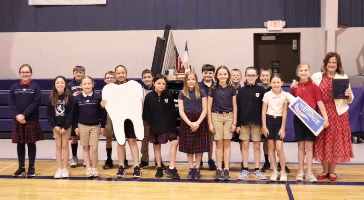We are very pleased to announce our 2025's First place Children's Dental Health Month winner from Cair Paravel Latin School in Topeka, KS! For their creative efforts, Mrs. Darla Hass's 3rd-grade class received a First-Place Award plaque along with a whopping $500 gift card to put toward supplies or an end-of-year classroom party!