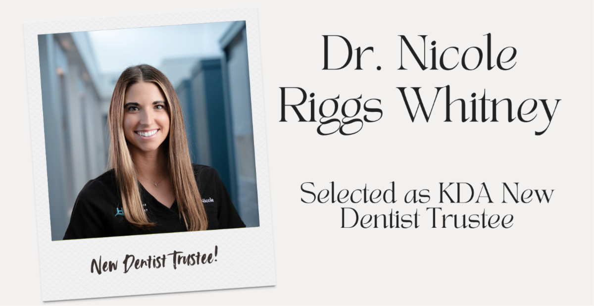 The KDA is pleased to announce the election of Dr. Nicole Riggs Whitney as the KDA’s New Dentists Trustee for a 2-year term through April 2027. Dr. Whitney was selected from new dentists who applied for the position through KDA’s Membership and New Dentists Committees. These applications were vetted by the Committee’s and then Dr. Whitney was ultimately elected by the KDA Board of Trustee.