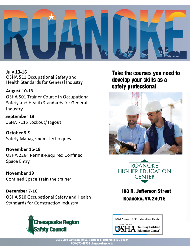 For more information, contact Kevin McFarland, Roanoke Branch Leader at 540-682-7850 or visit