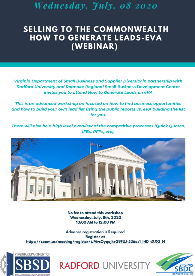Join the Roanoke Small Business Development Center for the following opportunities!