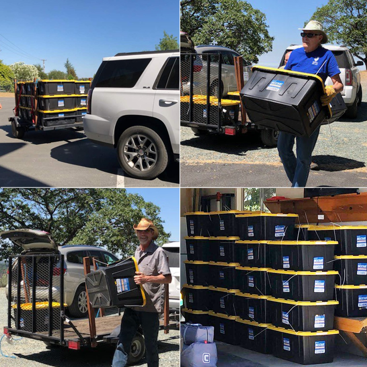 Top Left: Project (Re)Start bins from Trinity, Sutter Creek, loaded and ready to deliver