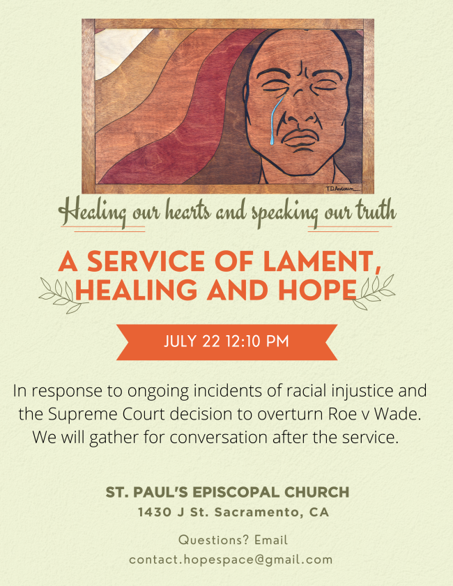 In response to ongoing incidents of racial injustice and the Supreme Court decision to overturn Roe v Wade. We will gather for conversation after the service.