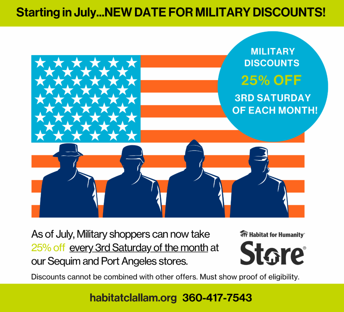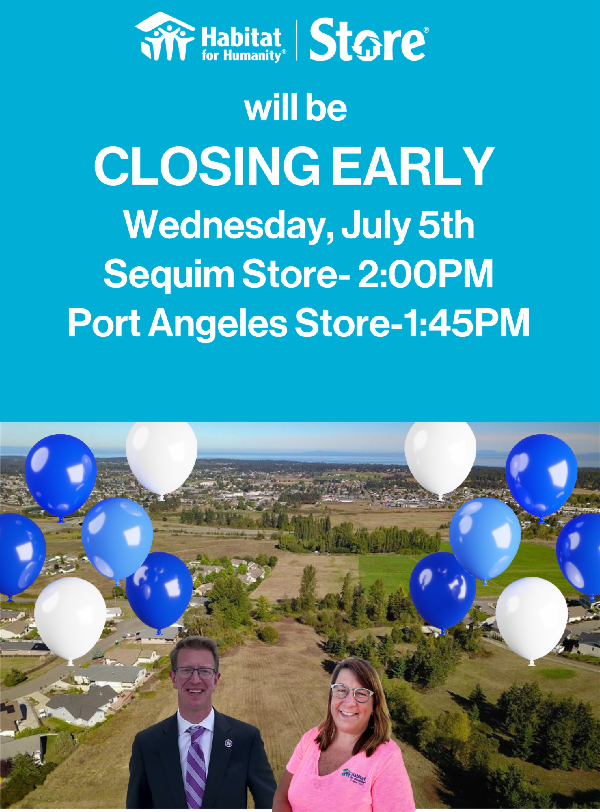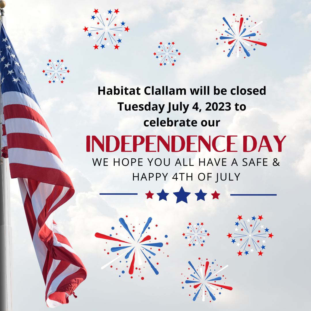 In observance of Independence Day, Habitat Clallam will be closed Tuesday July 4, 2023