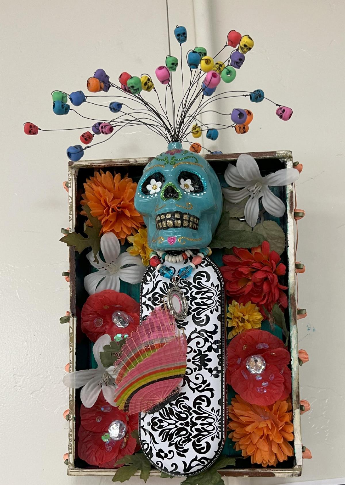 The September challenge is to make a mask that hangs on the wall. Just in time for the October show at Desert Hills, Halloween, and Dia De Los Muertos.