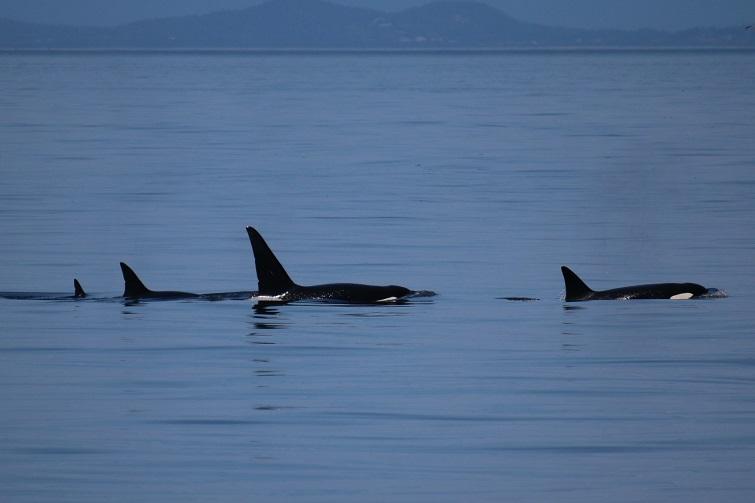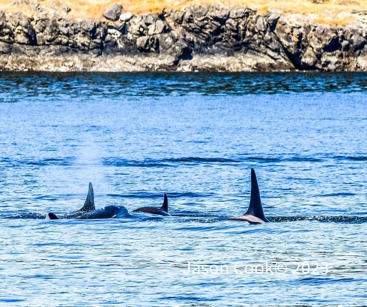 On July 27, T34s, T37, & T37Bs made their way north in Haro Strait. T46B1s & T46C2 were seen in the Strait of Juan de Fuca.