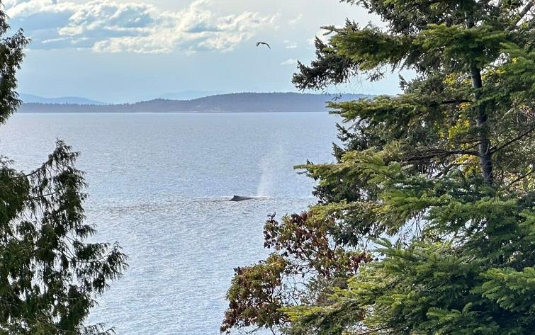 18:10 - A humpback just passed Center for Whale Research headquarters heading north on the west side of San Juan Island.