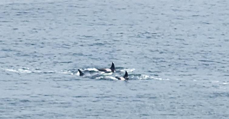 18:34 - We are sitting at Grandma's Cove at American Camp right now. There is a pod of at least five orcas pretty far off shore. There were a few whale tour boats watching them but the orcas slipped back behind them and the boats left towards the lighthouse. We lost sight of them about 10 minutes ago. [Per Ellie Sawyer, this is the T36As, T46s, T75Bs, and T77C and T77D.]