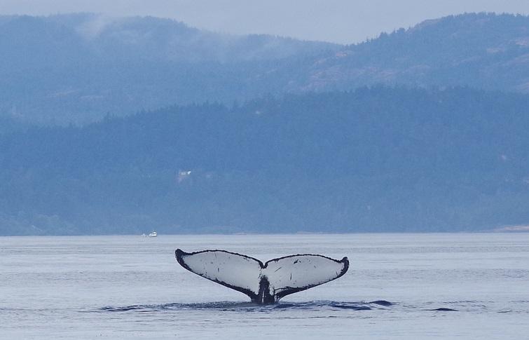 07:30 - Humpback sighted north of Orcas/southeast of Sucia - whale headed east. We were blessed with it passing right in front of our boat and shown a tail fluke on the last breath.