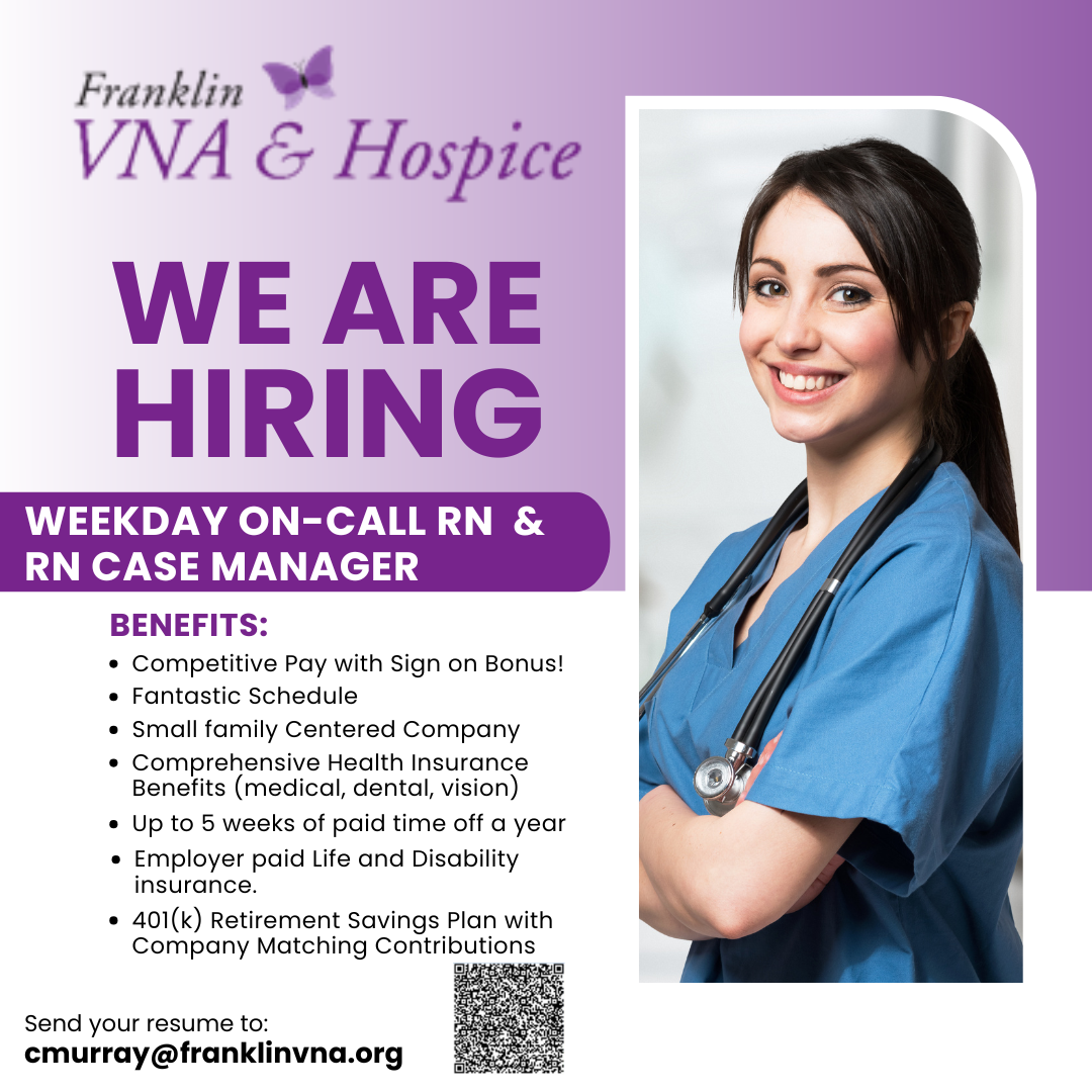 Franklin VNA and Hospice is here to support you and the community’s needs. Thank you for choosing Franklin VNA and Hospice as your Home Health and Hospice agency and for sharing your experience with our services with others. It is because of you that we are able to continue to remain a small independent hometown agency.