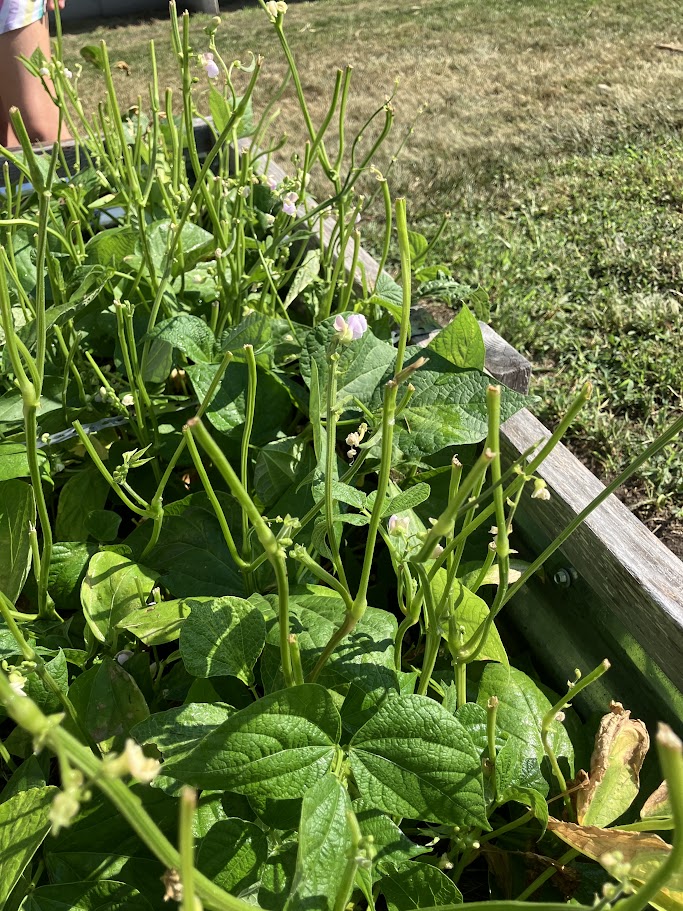 We had a discussion about the Great Green Bean Mystery. Why were the upper leaves gone? We had many theories... ants, beetles, and deer. We concluded that, despite the substantial fence surrounding the school, hungry deer were the most likely culprit.