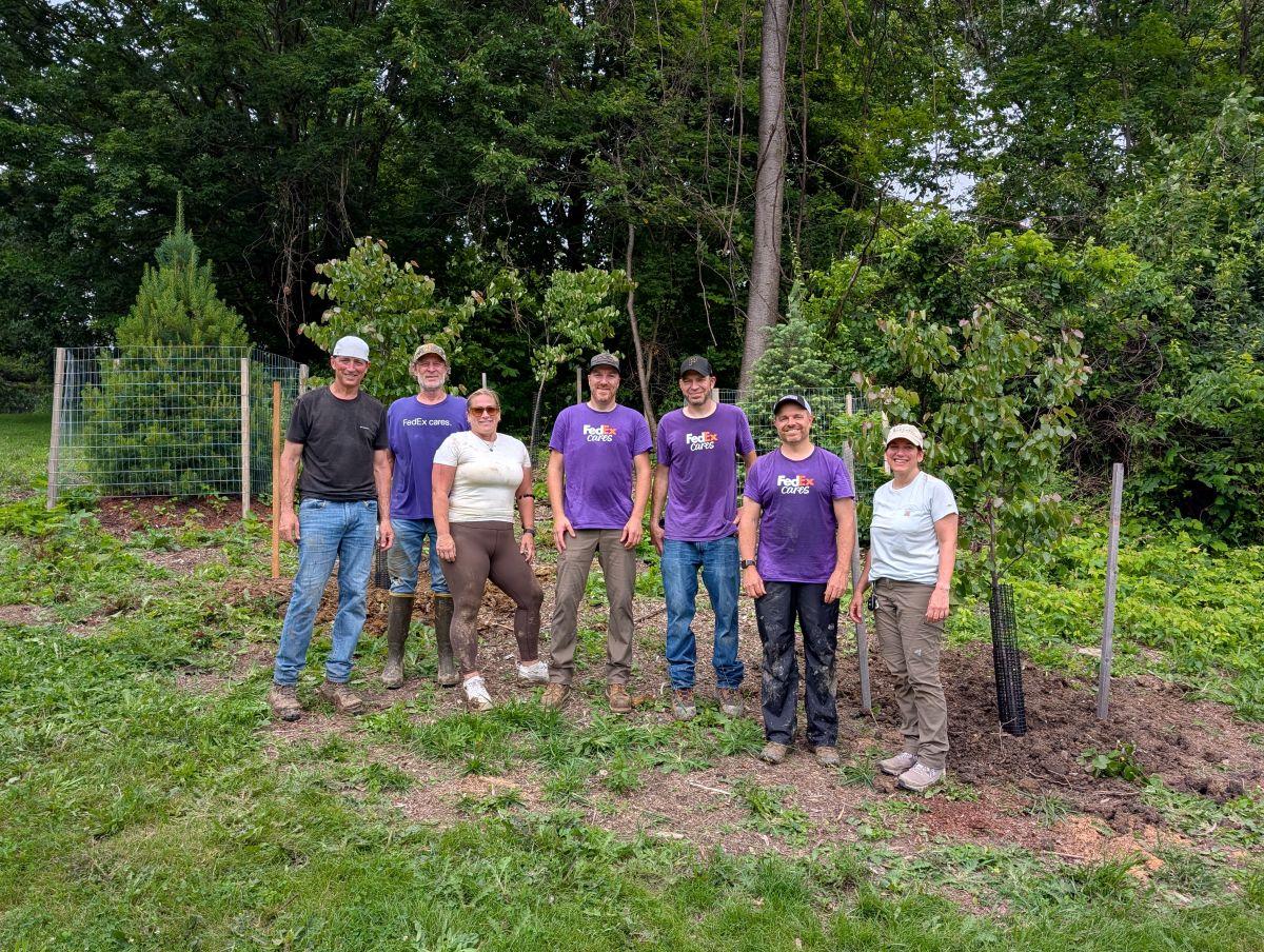 On June 18, we teamed up with FedEx volunteers to plant 14 native redbud trees at Settlers Cabin Park as part of our Park Entrance Enhancements project. This small but mighty crew made the park’s entrance more welcoming, sustainable, and better equipped to manage stormwater runoff. Earlier this spring, professional landscapers also planted 11 large conifers as a part of this project. Together, this diverse mix of trees will create new habitat for the animals and insects that call Settlers Cabin Park home. We would like to extend a huge thank you to the hard-working volunteers and to FedEx for funding for this project, which was a recommendation in the Ecological Assessment and Action Plan for Settlers Cabin Park. Thanks also to the Allegheny County Parks Department for their partnership on this planting.
