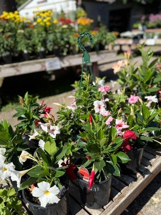 This year marks the debut of a new Dipladenia called 'Bluphoria', featuring purple flowers. We have them at the nursery while quantities last. It’s a continuous bloomer, great for containers, and a beautiful new color.