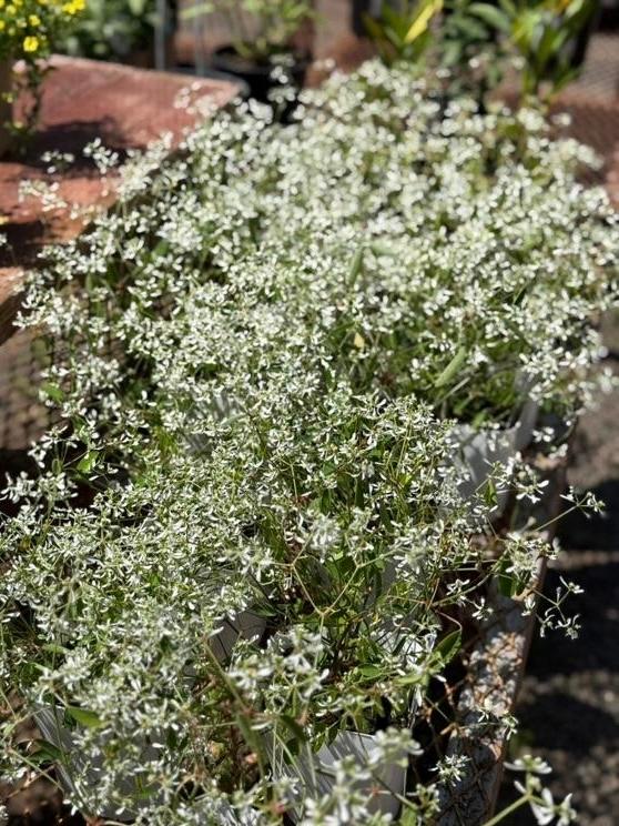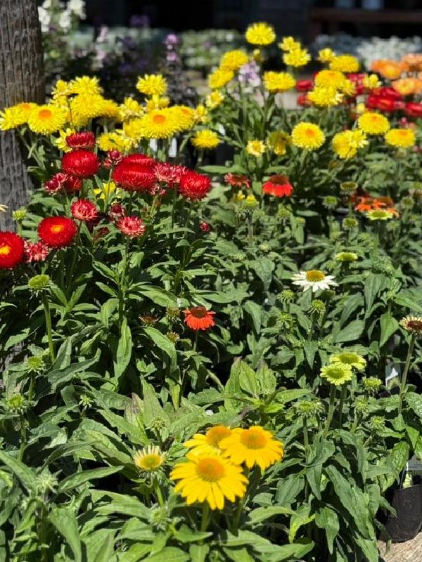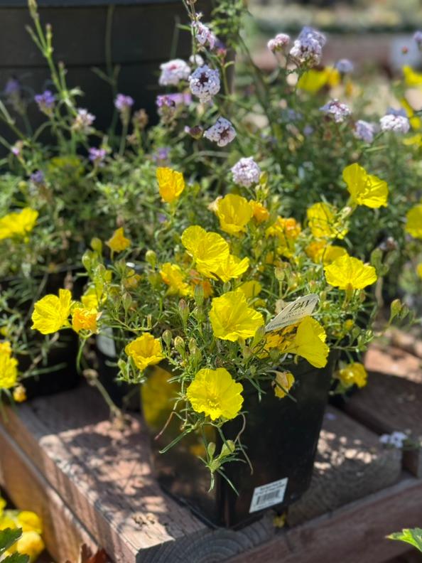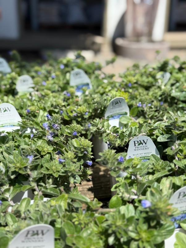 The Proven Winner brand has been a hit in its return this year - they have some good genetics in the plants they breed. Noteworthy summer bloomers include Evolvulus 'Blue my mind' (compact, striking blue flower), Calylophus 'Ladybird sunglow' (bright yellow flowers, larger than normal Calylophus), Gomphrena 'Pink truffula' (great for butterflies!), and Euphorbia 'Diamond frost' (fluffy with tons of white flowers).