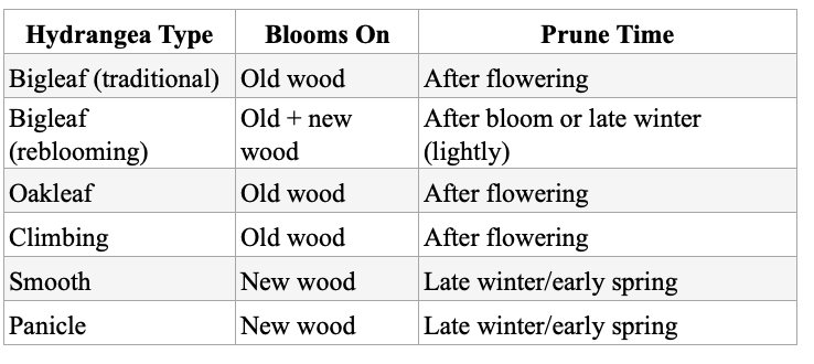 The following is a simple guideline to help you navigate the various types of hydrangeas: