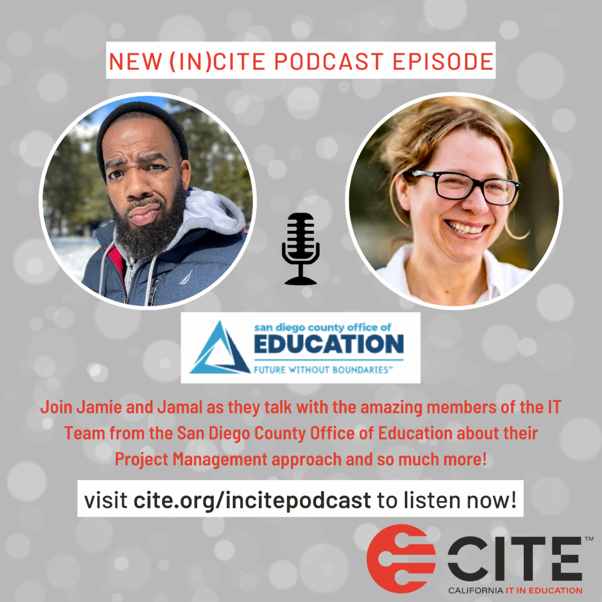 The (in)CITE Podcast features a wide variety of guests covering important Edtech topics facing California districts, and is hosted by our very own CITE members Jamie Lewsadder and Jamal Boyce. Listen on Apple Podcasts, or our website.