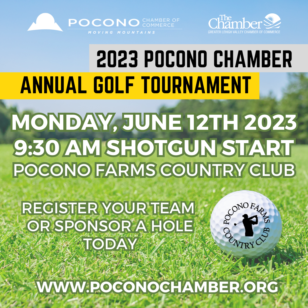 The time is now! The Pocono Chamber of Commerce invites you to participate in the 2023 Golf Outing, on Monday, June 12th located at Pocono Farms Country Club. Experience Award-winning Golf! Relax in Nature!