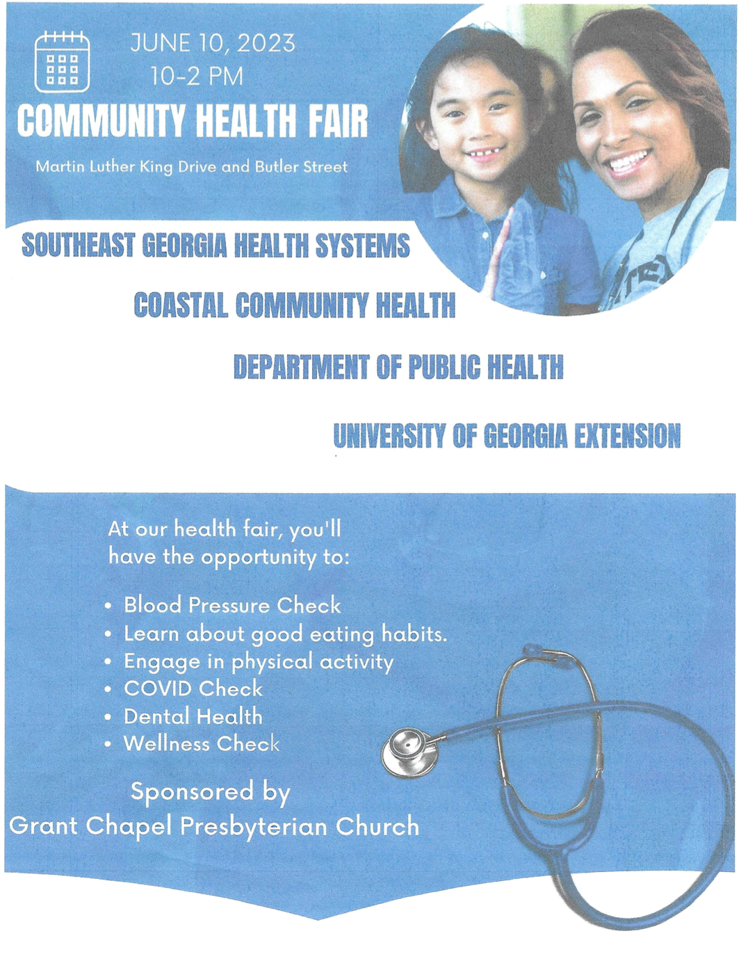 Health Concerns: Grant Chapel Presbyterian Church has teamed with memebrs of the Health Care Community to sponsor a local health fair. Since the pandemic, we have either been shut down or shut in. It is time to get out. This is why it is important to know how we are doing as a community.