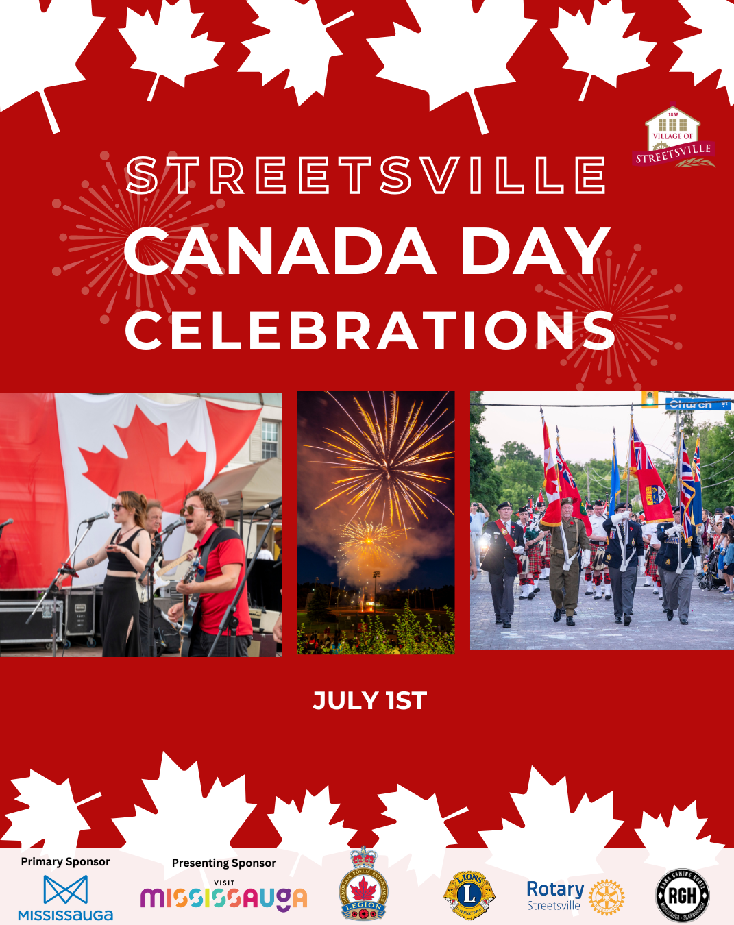 Church Street will be closed from Queen Street South to Main Street on Tuesday, July 1st, 4:30pm to 12:00am. See you on July 1st! For more info, visit villageofstreetsville.com.