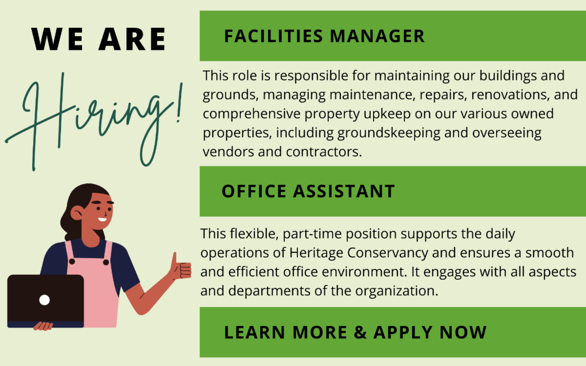 That is why we are drawn to the mission of Heritage Conservancy to steward the land and history of our region and to educate people of all ages about the natural world. From our own experience in non-profit leadership, we have learned that it is critically important to support an organization through unrestricted gifts that can be used where most needed. While unrestricted giving may appear impersonal, the Conservancy relies on such support to fund the basic operations that undergird its overall mission. We have also pledged five years of on-going gifts, so that the administration knows that they can depend on them. Please join us."