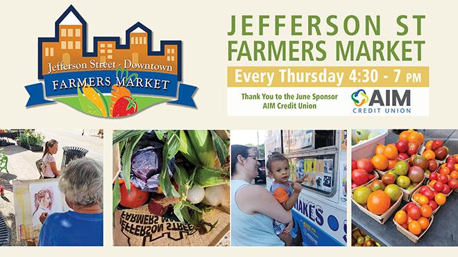 Downtown Partners invites you to the Jefferson Street Farmers Market! The market takes place on the 300 - 500 blocks of Jefferson Street on Thursdays from 4:30 - 7 PM.
