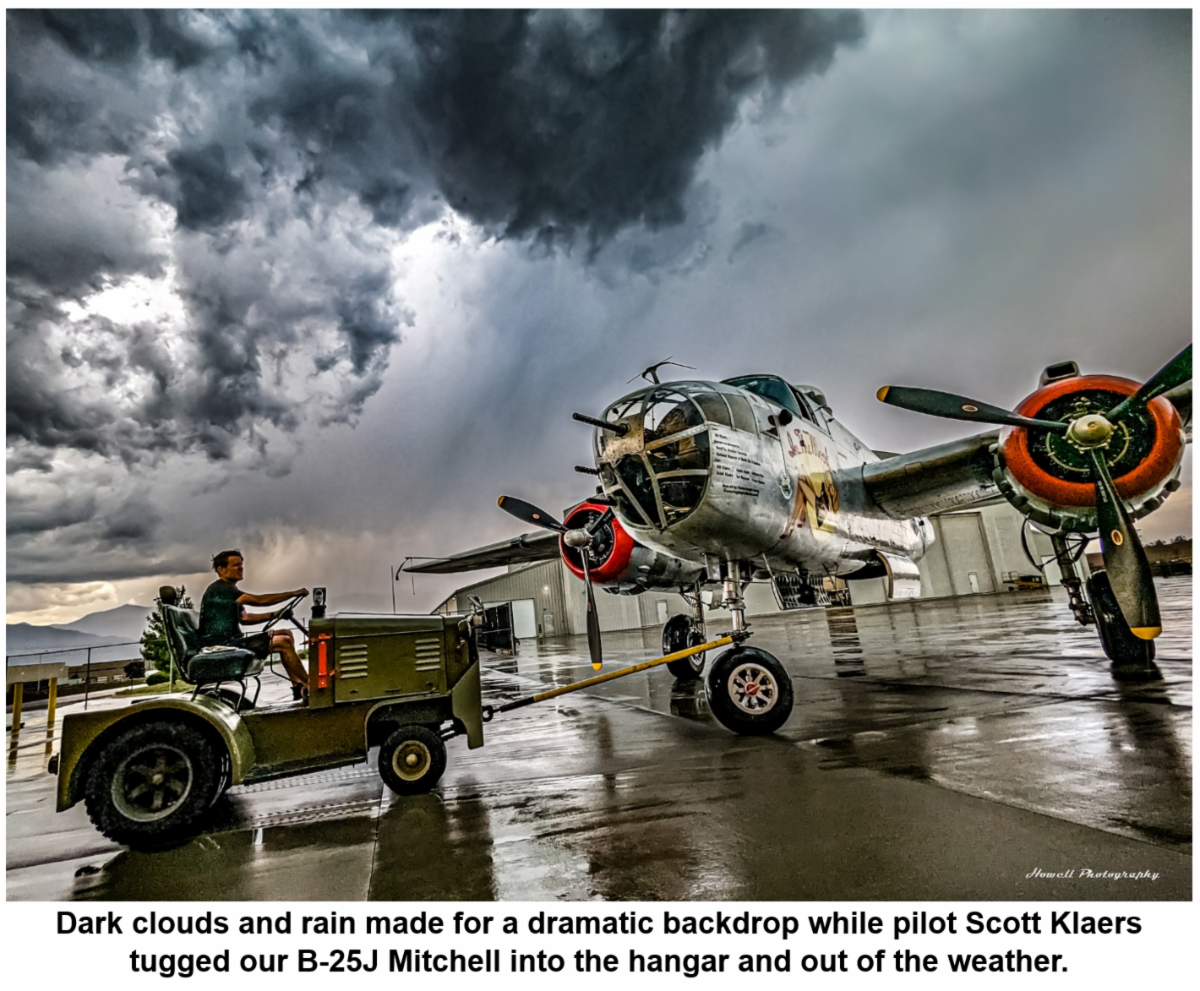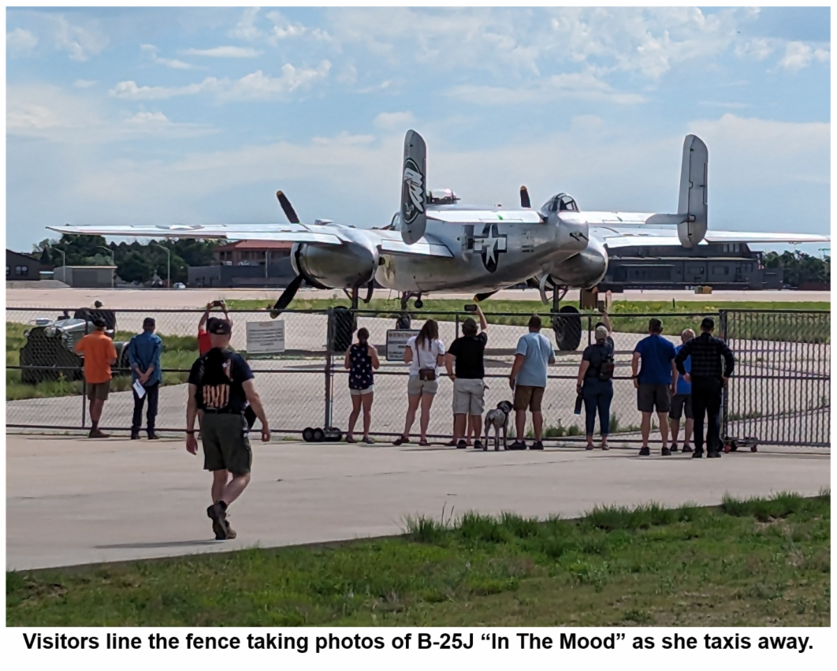 The morning started with the rollout and departure of our B-25J Mitchell “In The Mood” medium bomber, which was participating in an overflight of the Tri-Lakes Independence Day Parade in nearby Monument, Colorado.