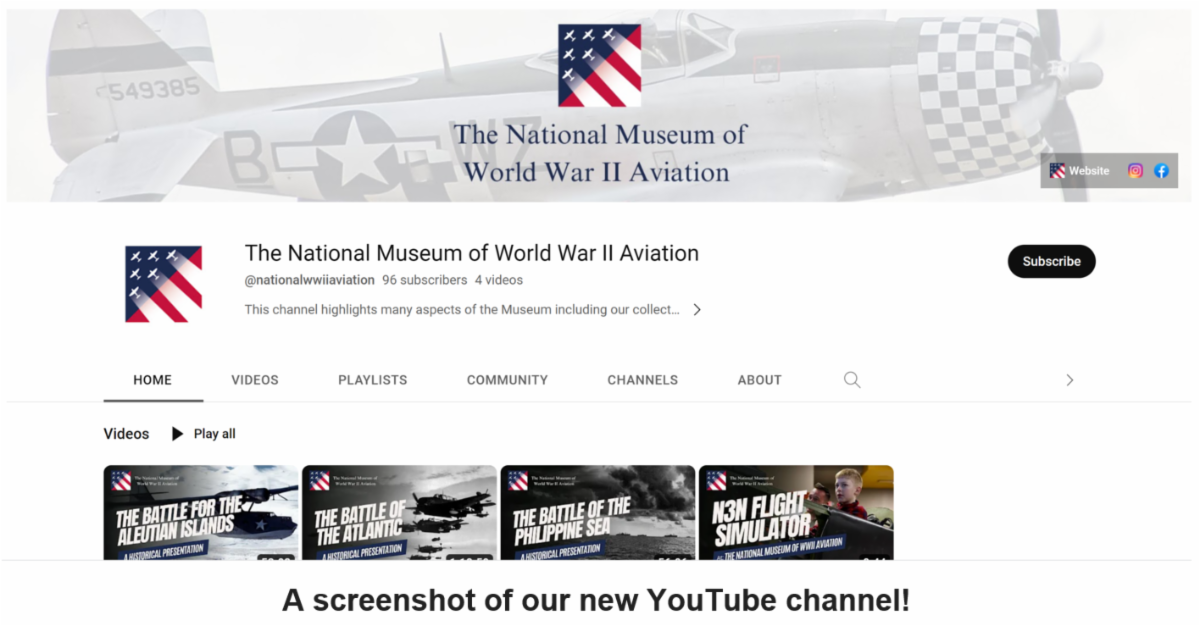 YouTube provides an unparalleled platform to share our deeply immersive and educational content with World War II aviation enthusiasts and history lovers globally. With our new media team volunteers steering this initiative, you can look forward to captivating historical presentations, exclusive behind-the-scenes footage, engaging information on the museum's aircraft, and heart-touching interviews with veterans. The communications team is excited to produce more content with this new medium in mind!