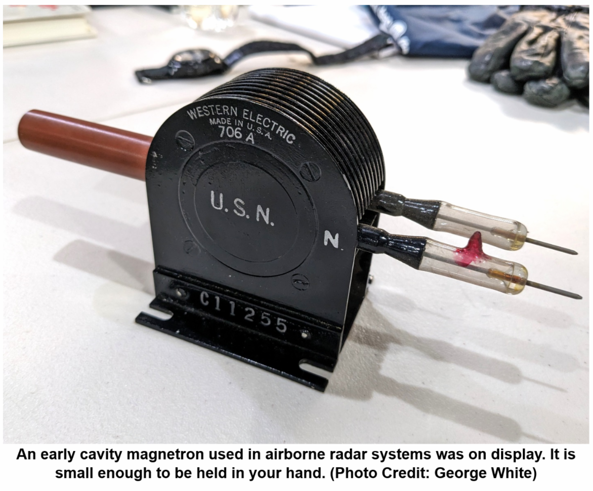 Low-frequency, long-wave radar proved itself in the Battle of Britain in 1940, but its big antennas weren't suitable for ships and planes. Development of the cavity magnetron, which was small enough to hold in your hand, allowed deployment of smaller antennas for mobile use. A post-war, joint review by the British Royal Navy and what remained of the German U-Boat forces credited "radar, specifically aircraft radar, as being the largest single factor in the demise of the whole U-Boat system," Lynch said. Visitors to the event were able to see an example of a period aircraft cavity magnetron (see photo below).