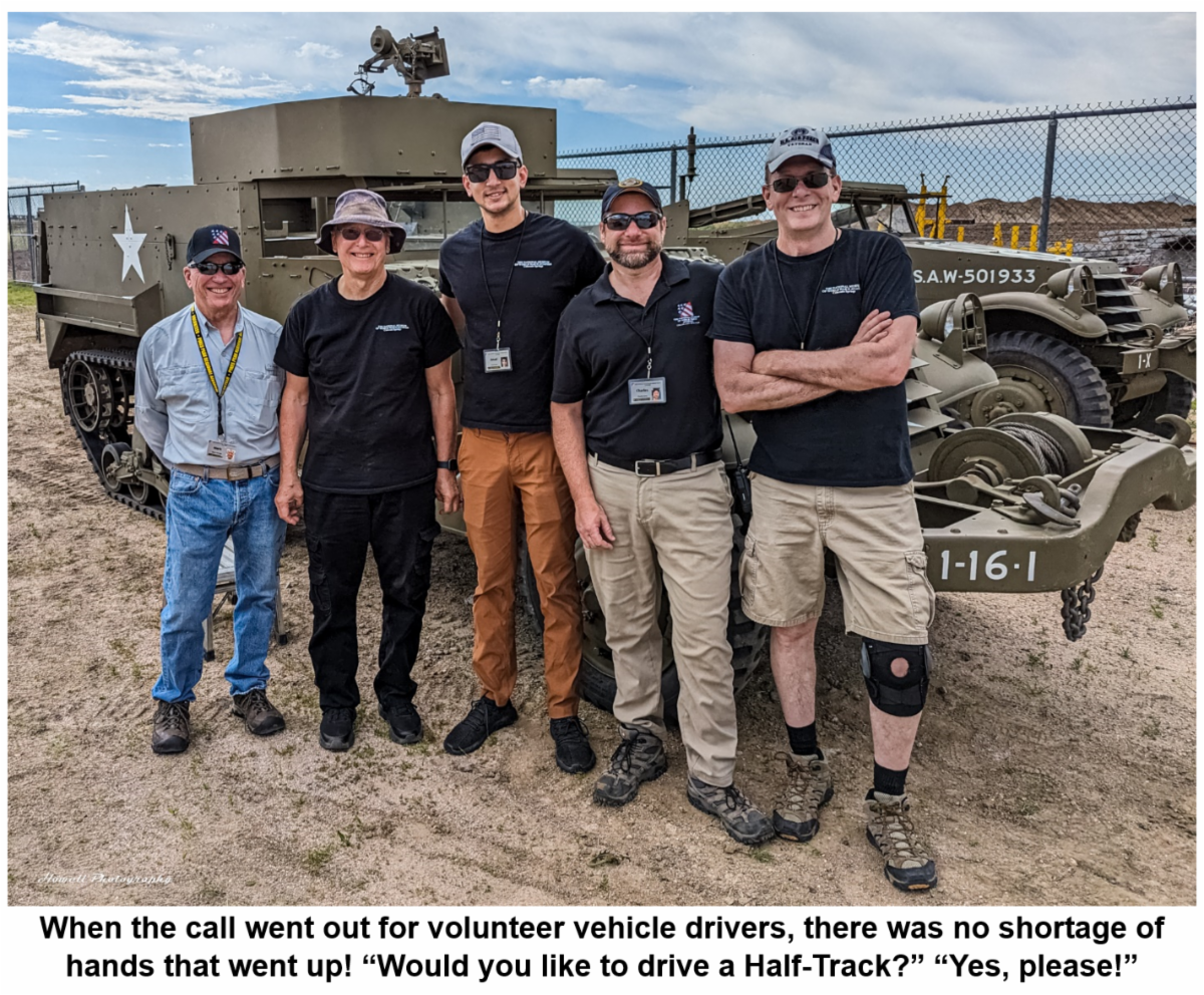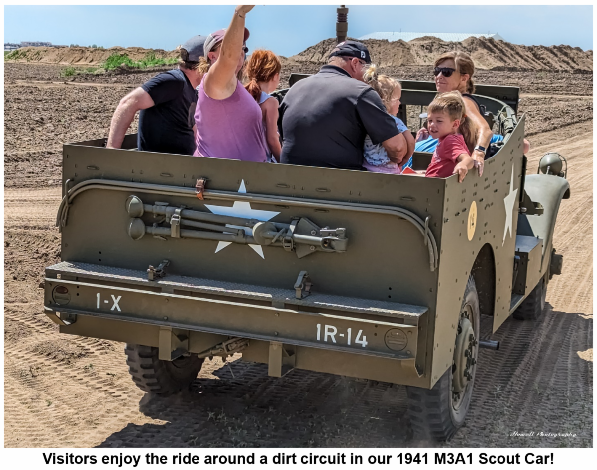 Very popular with the Independence Day crowd was the opportunity to ride in some of the Museum’s World War II vehicles! The lines were long all day for the 1941 M2A1 Half-Track, M3A1 Scout Car, and both Jeeps, with rides being given around a large dirt circuit (where the new Museum expansion will be built!). The noise, heat, dust, uncomfortable seats, and hot metal all gave riders an idea of what it must have been like to travel in these vehicles during wartime … and there was not one single complaint, just hundreds of smiling faces happy to have fulfilled a dream ride!