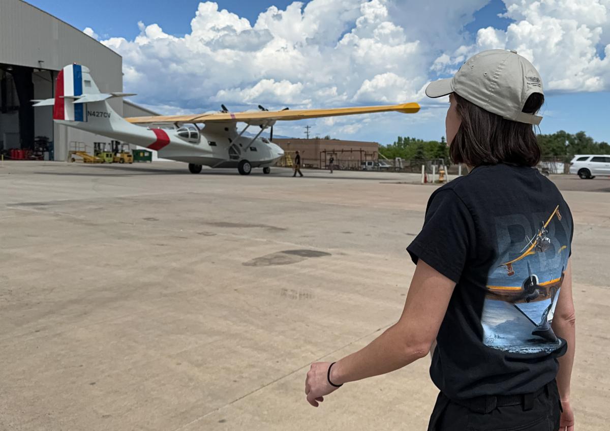 Chuck Sherman, 68, of Aurora, Colorado, shot this photo of museum volunteer Nicole Bertola on June 10 following our special presentation “The Battle for Alaska” and PBY Catalina demonstration flight. Nicole is sporting a special edition PBY t-shirt, designed by museum volunteer Larry McManus, that was available only at this event!