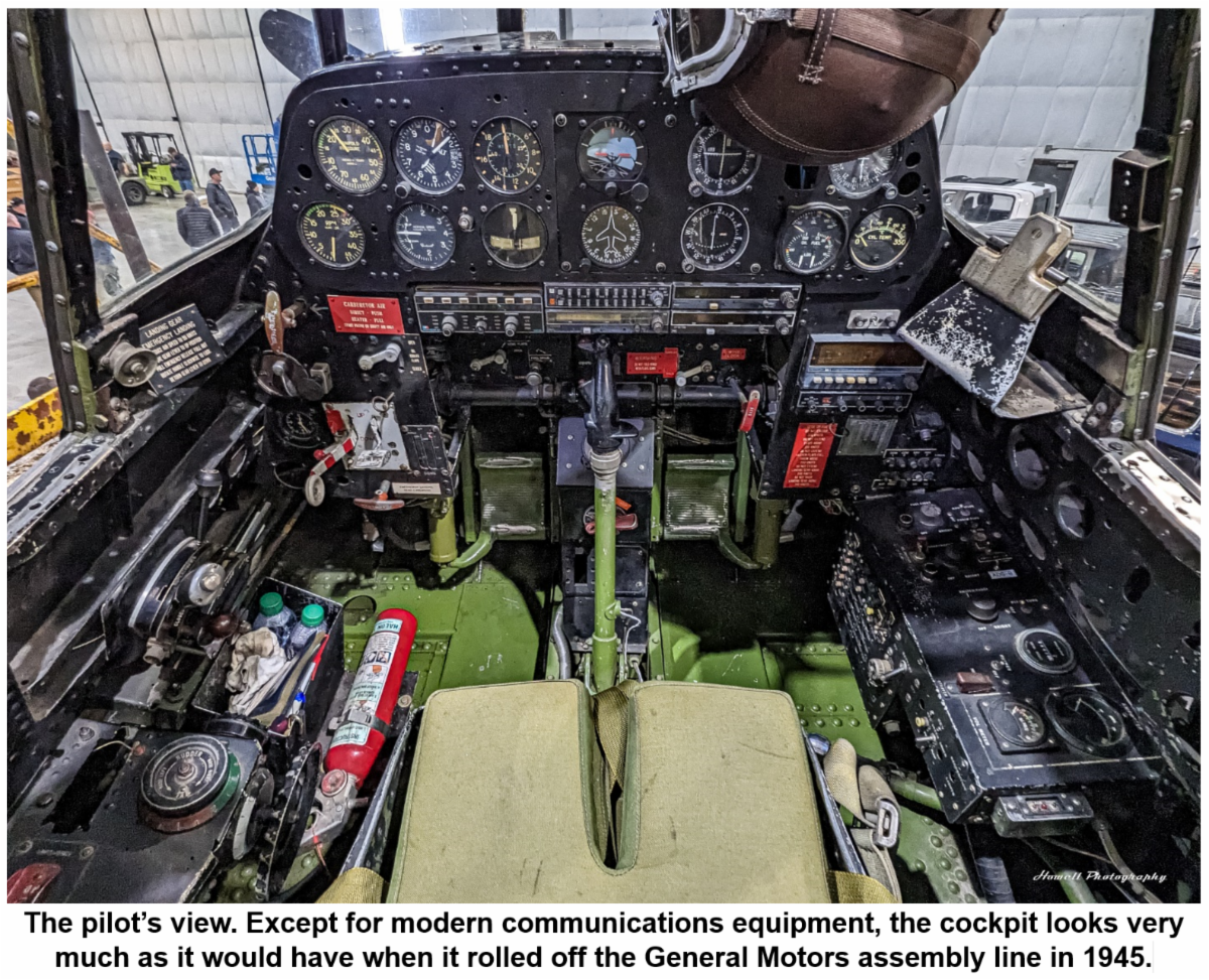 91453 was delivered to the Navy by General Motors in August of 1945, was not involved in any combat theater of WWII, having come off the General Motors (GM) production line as the war was winding down. After almost 11 years of service with the Navy, it was stricken from government records in July of 1956 with 1,600 total flying hours. Today, after having gone through several private owners, there are about 4,400 hours on the airframe. The Wright R-2600-20 engine, which isn't the original powerplant, has logged about 340 hours.