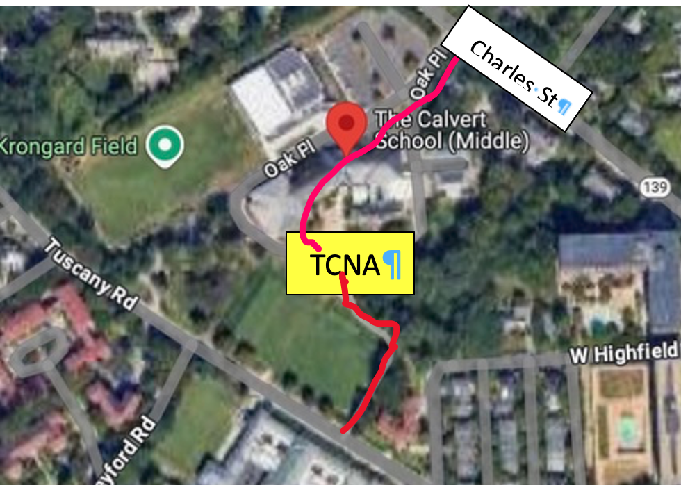 Driving: Travel south on Charles Street and just before 4220 N Charles Street turn right into Calvert School and follow the road all the way to the end.