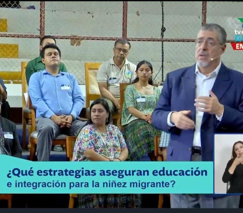 Pictured above: Sara meets President Arévalo | Pictured above: Sara (second row on right) is shown on a Guatemalan TV station during the Open Dialogue. | | WALC Alumna Meets President of Guatemala | |