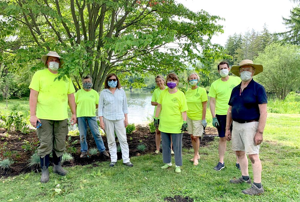 In the meantime we are as busy as ever! Our good deeds and efforts are paying off. The hanging baskets arrived at a very fortunate time as the town started to reopen. So many people have extolled on their appearance and expressed gratitude to us. Thank you Bianca Romano. The maildrop area on Pine Street looks astounding and has been receiving many compliments. Lee Garden is gorgeous this year and has been well attended with visitors of all ages. Photos of its blooming varieties have been circulating. Thank you to each volunteer for your efforts and hard work. Our newest project at the Mead Park bridge and patio on Richmond Hill Road is now underway. Faith Kerchoff and Rob Carpenter have added this to their accomplishments, so please contact them to offer assistance.