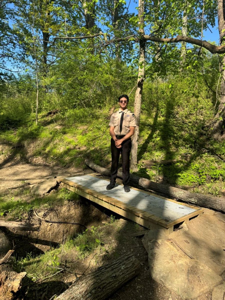 Jay Sen, from Scout Troop 220 in Pitcairn, PA recently completed his Eagle Scout Project in Boyce Park. "My Eagle Project is a foot bridge on an upcoming trail in Boyce Park that connects Wildflower Hill and the park entrance. I found out about this project through a teacher at my school who is the Boyce Park Trail Steward and part of Trail Pittsburgh. I started this project at the beginning of 2024 by meeting with rangers and seeing the scope of work. My Eagle Project Proposal was accepted in October 2024, and my application for the Allegheny County Parks Small Project Stewardship Program was granted in March 2025. The bridge construction was conducted throughout April. This bridge is a vital part of the trail, and I hope this project benefits park users because this new trail goes into a previously untouched area of the park. The trail layout is also a fun track for mountain bikers. I am excited and grateful to be part of the amazing trails in Boyce Park!”