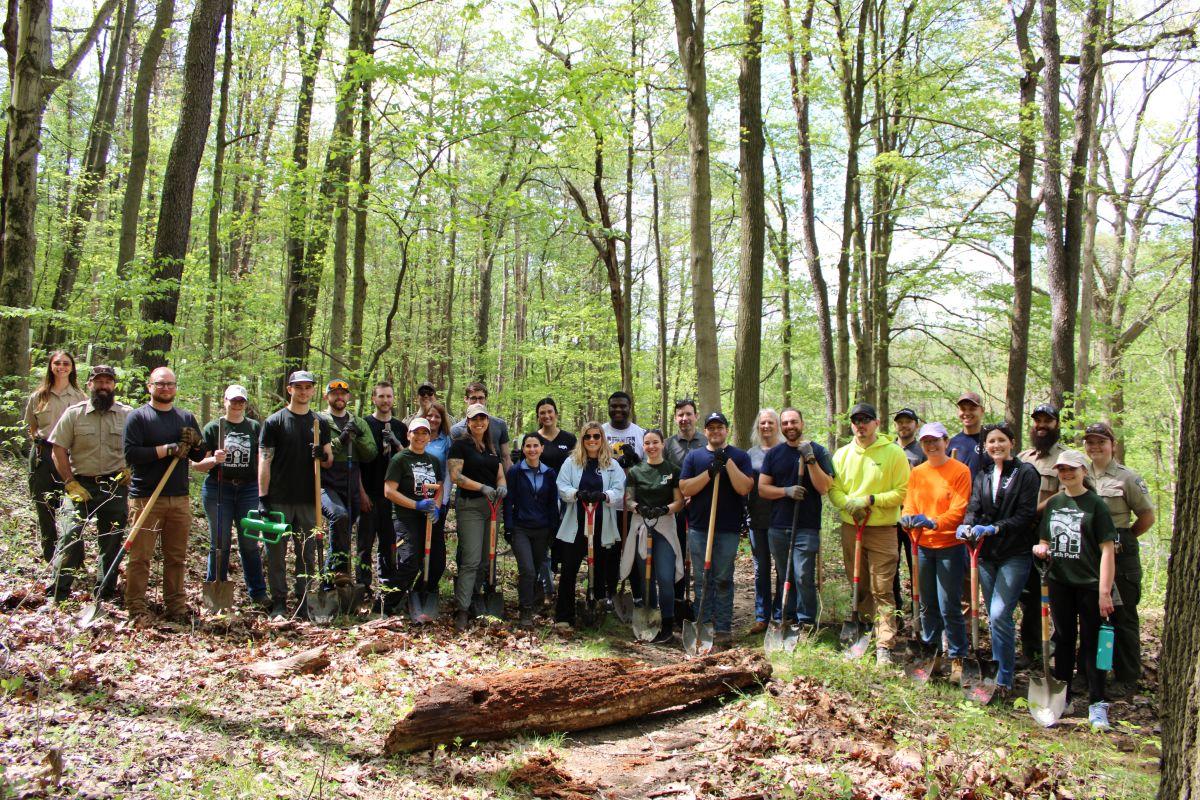 We teamed up with the Office of the Allegheny County Executive Sara Innamorato and the Master Builders' Association of Western Pennsylvania (MBA) on May 2 to plant 125 trees along the Paul Riis Trail, near the Vale of Cashmere, in South Park! We would like to extend a huge thank you to all the volunteers for their hard work and to the Allegheny County Park Rangers for leading the event. The 15 native tree species, which were grown by our friends at Tree Pittsburgh, include serviceberry, sweet birch, red and sugar maples, white and chestnut oaks, hornbeam, shagbark hickory, eastern redbud, flowering dogwood, Carolina silverbell, witch-hazel, eastern hophornbeam, white pine, and bladdernut. We are grateful to everyone who came together to help with this impactful reforestation project in South Park!